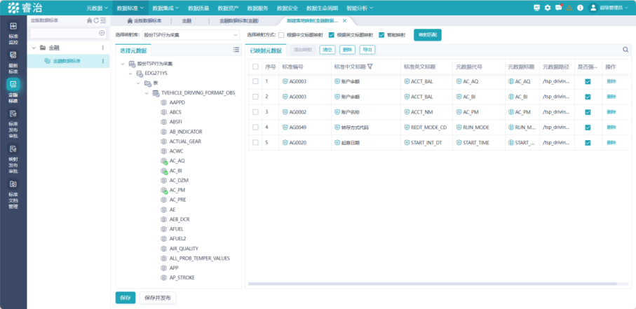 在數據資產確認環節,通過元數據采集、元模型定義、元數據維護、元數據查詢等功能,厘清數據資源,掌握數據來龍去脈,精確反映數據血緣,為數據資產入表工作提供可靠的評估與審計依據。