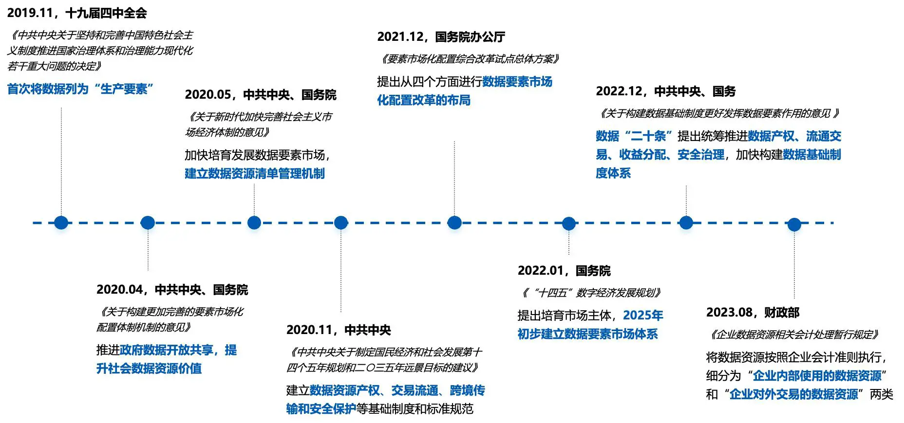 隨著數據要素產業經濟的興起,國家對數據要素的重視程度不斷提升。國家在制定相關政策法規、推動數據開放共享和促進數據產業發展等方面采取了積極的措施,鼓勵和支持數據要素的收集、整合、管理和應用,為數據要素創造了良好的政策環境和發展條件。