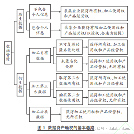 對于原生數據,數據采集企業投入了資源、技術和成本,并進行獨立存儲,應該取得其持有權(或所有權),并以此享有數據加工使用權和數據產品經營權。如果原生數據包含個人隱私信息,數據采集企業一般對這部分數據沒有所有權,但由于其在數據采集、存儲和管理方面進行了必要投入,在經過用戶授權且合法的前提下,可以獲得數據的使用權以及利用數據開發產品的經營權。