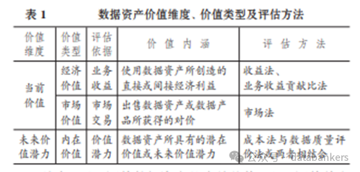 首先,既要評估數據資產的當前價值,也要評估其未來價值潛力。數據資產的當前價值主要表現為經濟價值和市場價值,經濟價值主要評估當前利用數據資產所能創造的經濟利益,市場價值以交易為基礎,評估數據資產在市場出售所能獲取的對價。數據資產的未來價值潛力表現為內在價值,內在價值評估主要是綜合考慮數據量、數據質量、市場發展潛力、應用場景等因素,對數據資產的潛在價值做出評估。