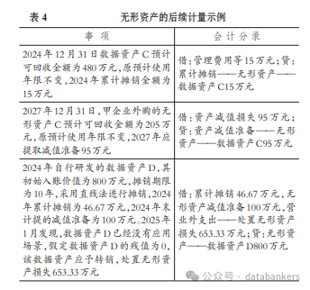 企業(yè)在數(shù)據(jù)資源無形資產(chǎn)的后續(xù)計(jì)量中,需要注意攤銷和減值兩個問題。企業(yè)數(shù)據(jù)資源無形資產(chǎn)的后續(xù)計(jì)量應(yīng)以其使用壽命為基礎(chǔ),并基于數(shù)據(jù)資源的價值易變性,對數(shù)據(jù)資源無形資產(chǎn)的使用壽命進(jìn)行合理估計(jì),持續(xù)關(guān)注減值情況。對于一些較為基礎(chǔ)的數(shù)據(jù)資源,由于其可用于多種應(yīng)用場景,因而其使用壽命可能相比更長。對于用于營銷推薦、風(fēng)險管理等的數(shù)據(jù)資源可能時效性更強(qiáng),因而其使用壽命也相應(yīng)較短,且市場因素等會導(dǎo)致其減值。企業(yè)需要綜合考慮所有事實(shí)和情況進(jìn)行合理的判斷。案例企業(yè)數(shù)據(jù)資源無形資產(chǎn)的后續(xù)計(jì)量方法如表4所示。
