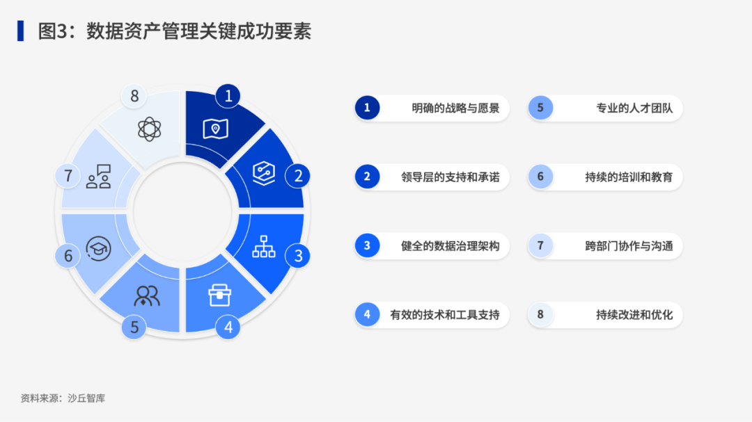 對于企業(yè)而言,數(shù)據(jù)資產(chǎn)管理工作并非一蹴而就,而是一個常態(tài)化的系統(tǒng)工程。通過對數(shù)據(jù)資產(chǎn)管理實踐案例的研究與總結(jié),沙丘社區(qū)將數(shù)據(jù)資產(chǎn)管理的關(guān)鍵成功要素總結(jié)為如下幾點: