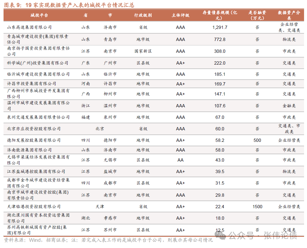 我們將已完成數據資產入表的19家城投平臺基本情況匯總展示如下: