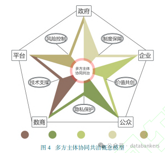 多方主體協(xié)同共治是落實(shí)國(guó)家戰(zhàn)略的重大需求,也是數(shù)據(jù)要素參與市場(chǎng)化配置的內(nèi)在規(guī)律,構(gòu)建政府,平臺(tái),企業(yè),用戶等多方參與協(xié)同共治模型,有助于推動(dòng)數(shù)據(jù)要素市場(chǎng)高質(zhì)量,可持續(xù)發(fā)展。如圖4所示,構(gòu)建數(shù)據(jù)要素市場(chǎng)多方主體協(xié)同共治模型,從以下方面展開(kāi)。