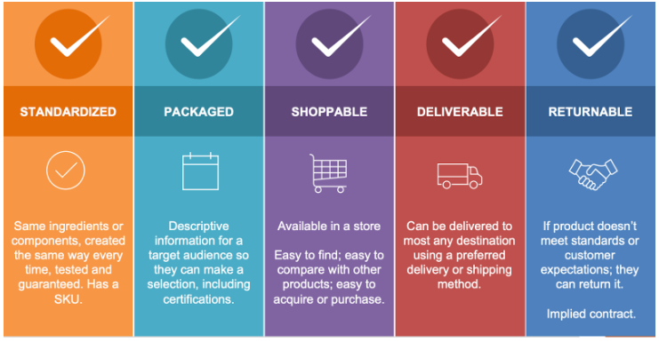 現(xiàn)實(shí)世界中的大多數(shù)產(chǎn)品都在數(shù)字商店或?qū)嶓w店中找到。商店是顧客購(gòu)物和賣家與顧客聯(lián)系的連接點(diǎn),消除了買賣之間的摩擦。在到達(dá)商店之前,產(chǎn)品只是資產(chǎn)或庫(kù)存。一旦進(jìn)入商店,產(chǎn)品就具有促進(jìn)購(gòu)物過(guò)程的某些特征:它們是標(biāo)準(zhǔn)化的、包裝好的、可購(gòu)買的、可交付的和可退貨的。(見(jiàn)圖1)。