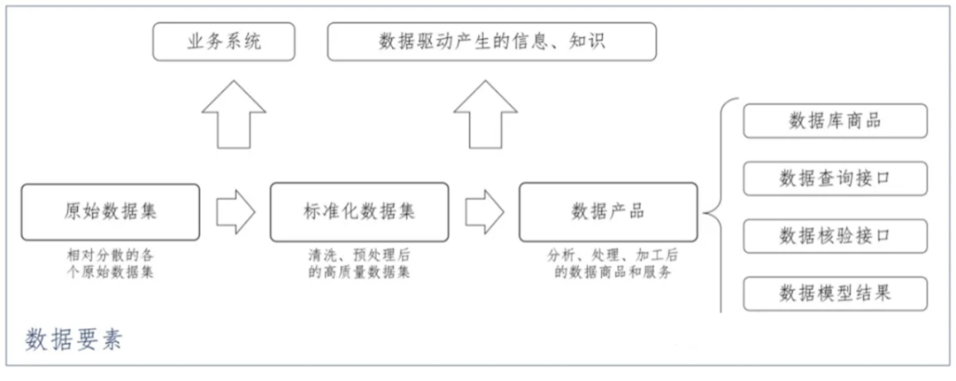 數(shù)據(jù)要素是指參與到社會(huì)生產(chǎn)經(jīng)營(yíng)活動(dòng)中,為所有者或使用者帶來經(jīng)濟(jì)效益的數(shù)據(jù)資源。因此,“數(shù)據(jù)要素”一詞是面向數(shù)字經(jīng)濟(jì),在討論生產(chǎn)力和生產(chǎn)關(guān)系的語境中對(duì)“數(shù)據(jù)”的指代,是對(duì)數(shù)據(jù)促進(jìn)生產(chǎn)價(jià)值的強(qiáng)調(diào),即數(shù)據(jù)要素指的是根據(jù)特定生產(chǎn)需求匯聚、整理、加工而成的計(jì)算機(jī)數(shù)據(jù)及其衍生形態(tài),投入于生產(chǎn)的原始數(shù)據(jù)集、標(biāo)準(zhǔn)化數(shù)據(jù)集、各類數(shù)據(jù)產(chǎn)品及以數(shù)據(jù)為基礎(chǔ)產(chǎn)生的系統(tǒng)、信息和知識(shí)均可納入數(shù)據(jù)要素討論的范疇。