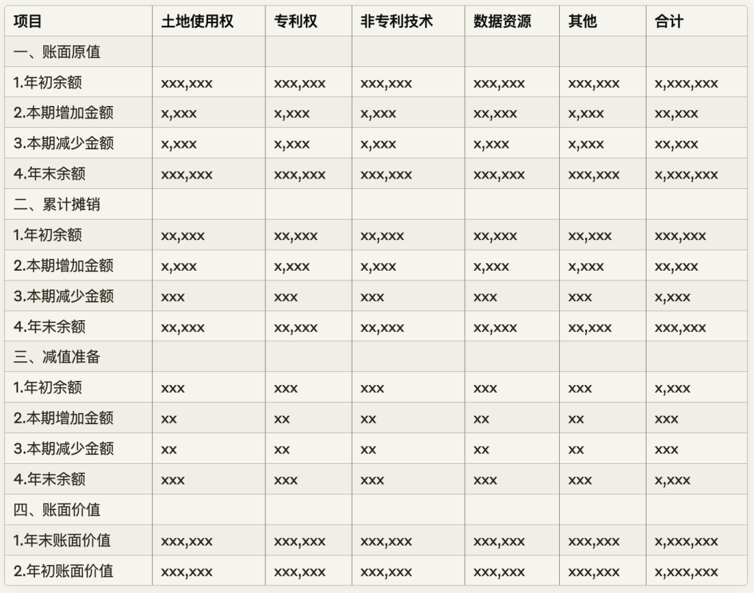 (2)無形資產(chǎn)表列示