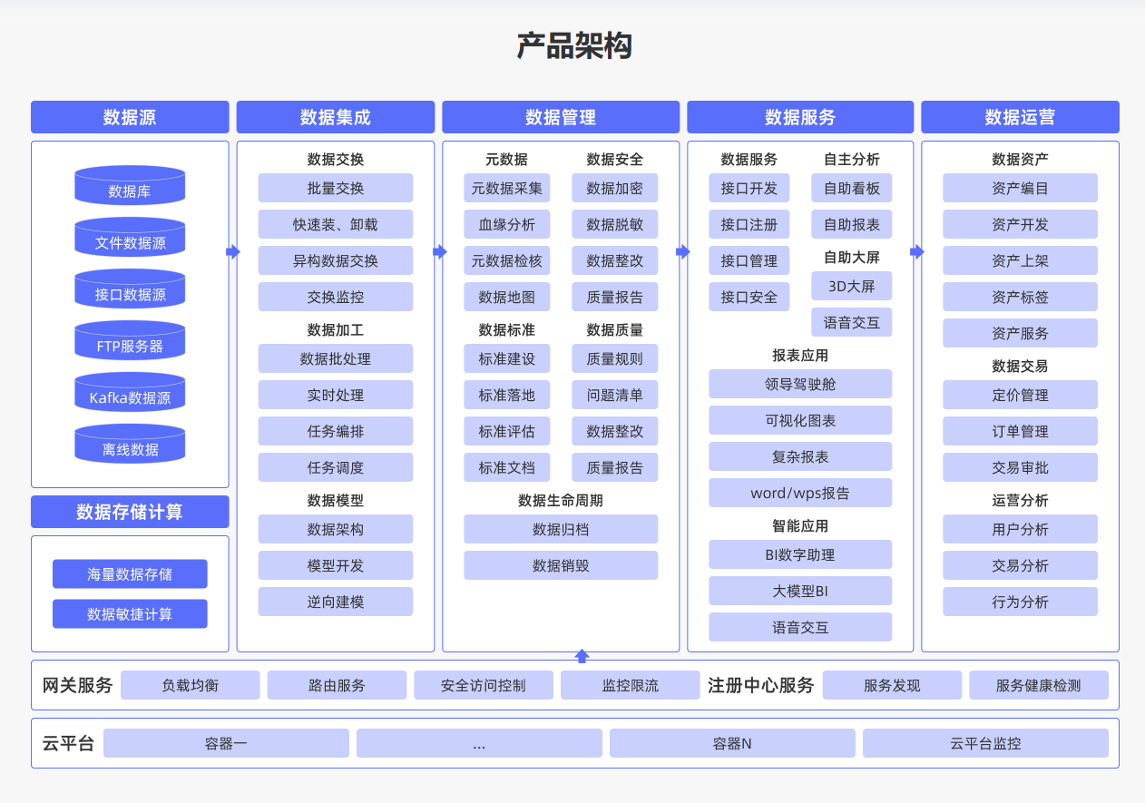 一體化平臺: 覆蓋數據資產“管、評、用、營”全流程,避免工具割裂。