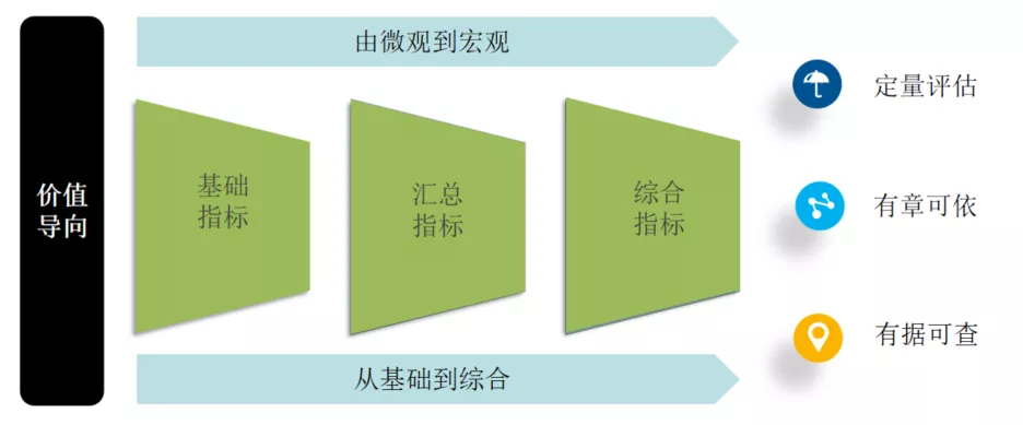 其次,“基礎(chǔ)指標(biāo)、匯總指標(biāo)、綜合指標(biāo)”三層的數(shù)據(jù)加工流向是:從已有系統(tǒng)中提取和加工基礎(chǔ)指標(biāo)、從基礎(chǔ)指標(biāo)加工出匯總指標(biāo)、然后為全面描述資產(chǎn)價值引入權(quán)重并加工出綜合指標(biāo)。完全實現(xiàn)從綜合指標(biāo)穿透到匯總指標(biāo)、基礎(chǔ)指標(biāo)直至現(xiàn)有系統(tǒng)的場景,使得數(shù)據(jù)資產(chǎn)價值的取值有源可查、有據(jù)可查。針對行業(yè)的不同,我們定義了一系列的基礎(chǔ)指標(biāo)、匯總指標(biāo)和綜合指標(biāo)體系。