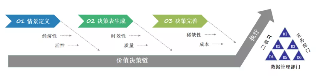 決策鏈不僅要生成決策建議,更重要的是關(guān)注決策的執(zhí)行和結(jié)果反饋。數(shù)據(jù)治理的核心主體包括數(shù)據(jù)擁有者(通常是各業(yè)務(wù)部門)、數(shù)據(jù)管理者(通常是數(shù)據(jù)管理部門)以及數(shù)據(jù)維護者(通常是IT部門)。相應(yīng)地,數(shù)據(jù)資產(chǎn)運營絕不僅是數(shù)據(jù)管理部門的任務(wù),IT部門和業(yè)務(wù)部門同樣承擔(dān)著重要的責(zé)任。不同決策建議下各部門間均需要明確各自任務(wù)并貫徹執(zhí)行,這樣才能達到真正意義上的數(shù)據(jù)資產(chǎn)共建、共享、共贏。