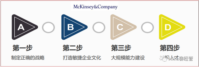 經過麥肯錫對全球 150家企業以及在數字領域表現的考察,可以將數字化轉型歸結為4步: