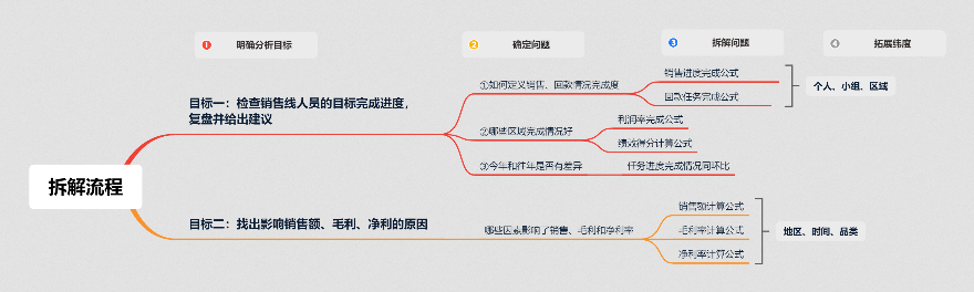 在明確分析目標后,就需要確定為了達成該目標,提出圍繞該目標需要解決的問題。可以使用思維腦圖,寫出在看到該目標后產生的問題。