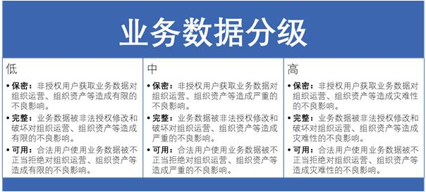 數據分級:按照一定的分級原則對分類后的組織數據進行定級,從而為組織數據的開放和共享安全策略制定提供支撐的過程。