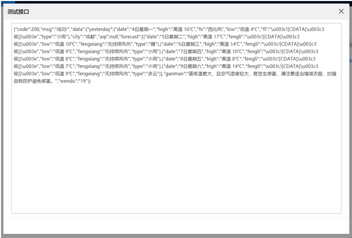 確認接口地址無誤之后,點擊“確定”按鈕,完成新建接口數據源操作。