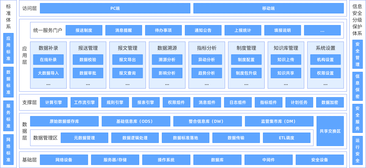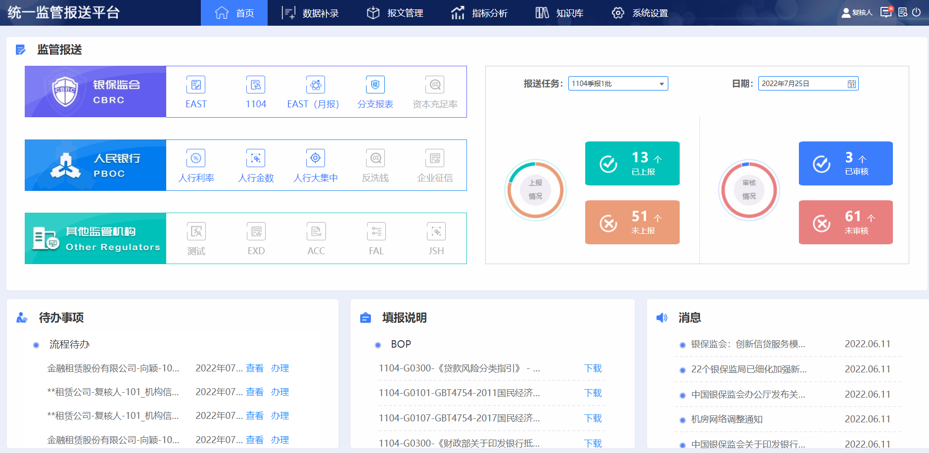 提供從數據補錄、報表初始化、在線填報、自動校驗、流程審核、數據匯總、報文生成、在線蓋章、報文導出、接口直連上報等全流程功能。