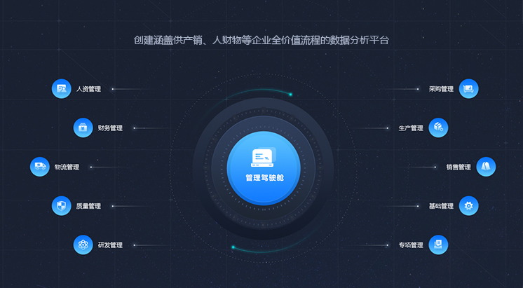 包括人財(cái)物、供產(chǎn)銷、質(zhì)量、研發(fā)等模塊覆蓋全部經(jīng)營(yíng)環(huán)節(jié)